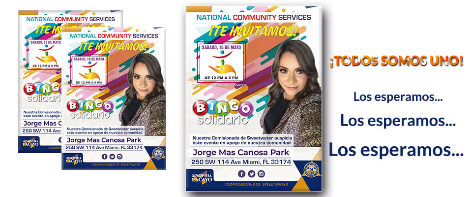 National Community Services INC. Se complace en invitarte a ti y a toda tu familia, el sábado 16 de Mayo de 12:00 pm a 6:00 pm en Jorge Mas Canosa Park, ubicado en la 250 SW 114 Ave. Miami, FL 33174, City of Sweetwater.