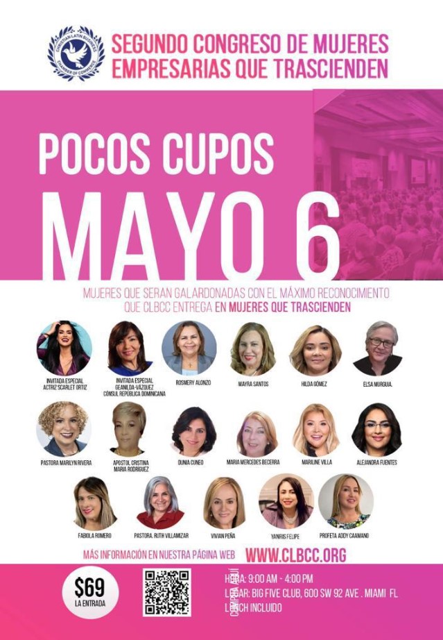 El pasado 6 de mayo de 2023 se llevó a cabo en Miami, Florida, el Segundo Congreso de Mujeres: Empresarias que trascienden, auspiciado por la Christian Latin Business Chamber of Commerce, en voz de su CEO y anfitriona, la Dra. Sonia Valdéz, y con el apoyo de National Community Services.