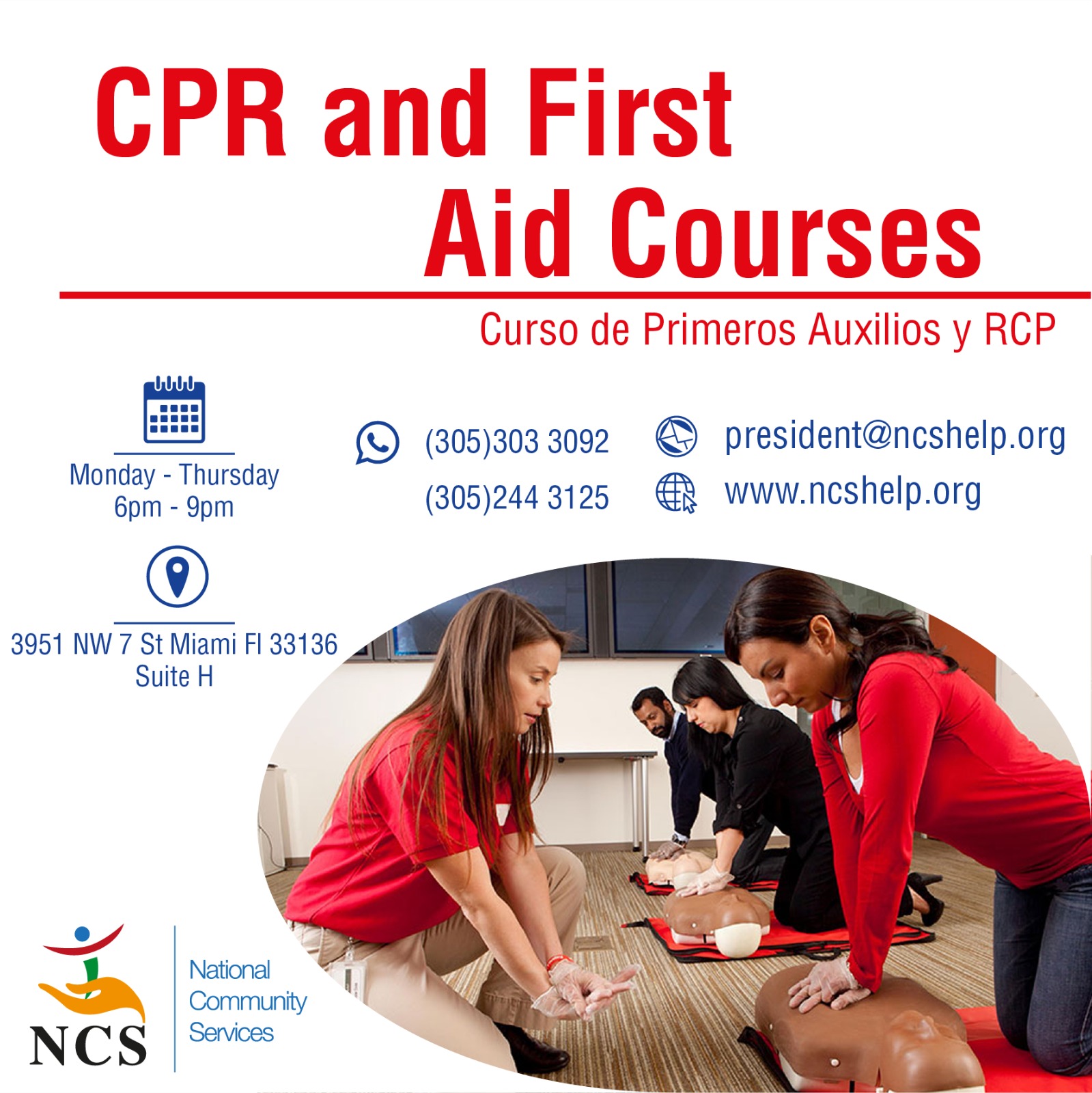 ¡Hola a todos! Soy la Dra. Martha Vega Hero, Presidenta de National Community Services. Hoy estoy emocionada de anunciar que estamos ofreciendo cursos de primeros auxilios y RCP para miembros de la comunidad.