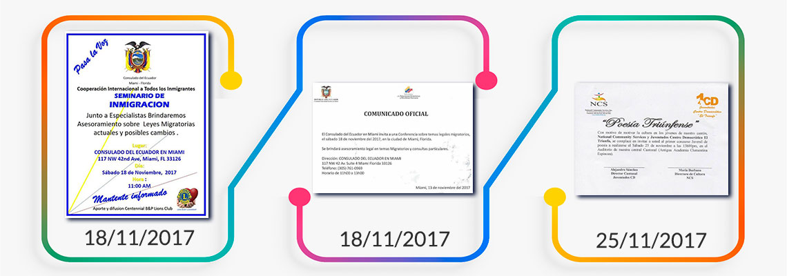 Recuerden, se llevará a cabo este sábado 18 de noviembre del 2017 en el Consulado Ecuatoriano en Miami.